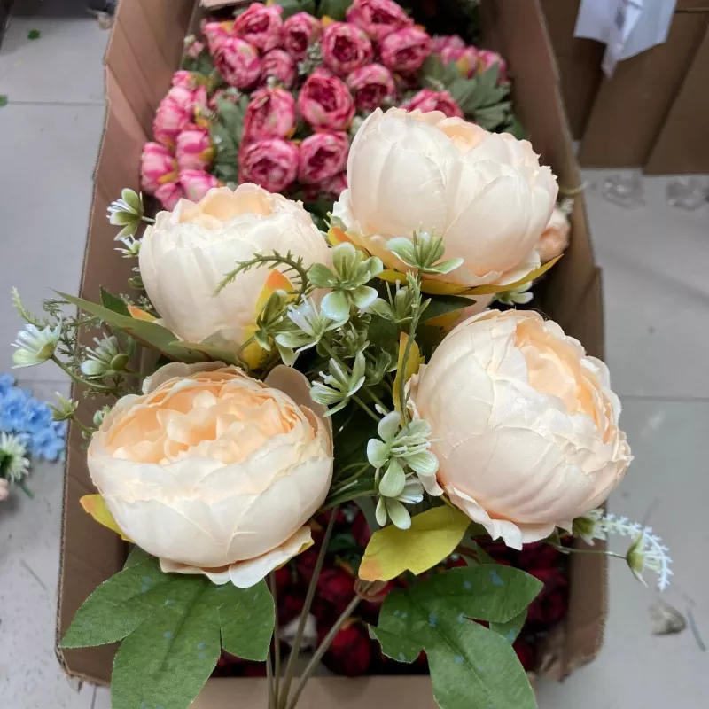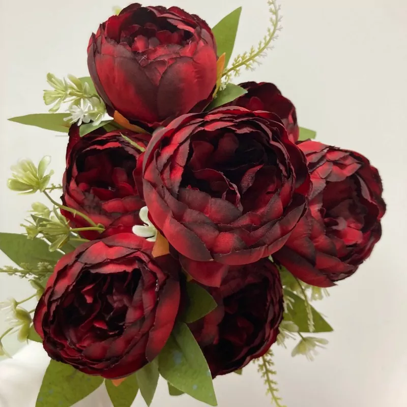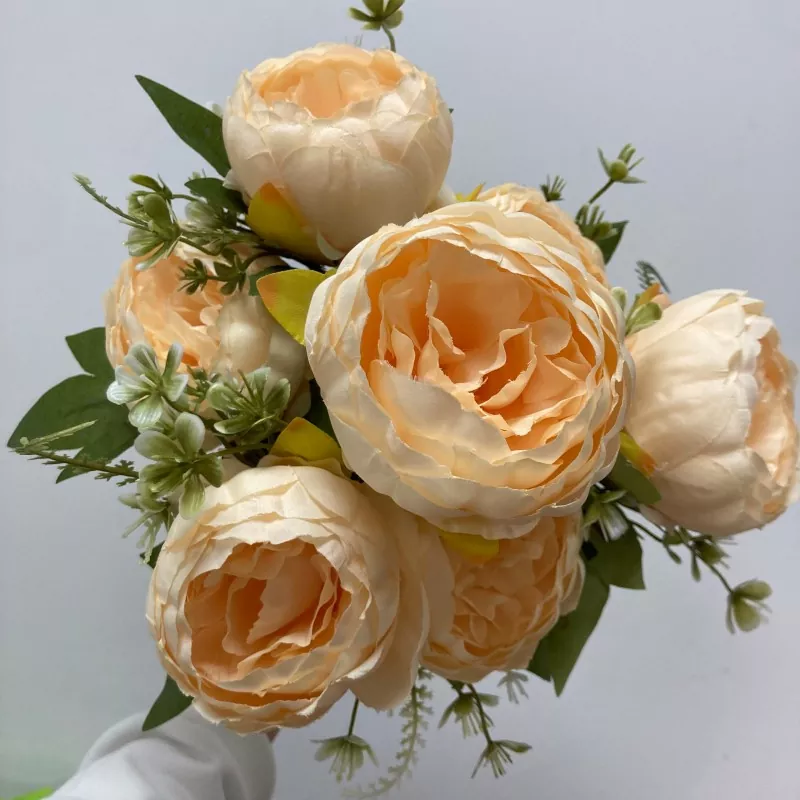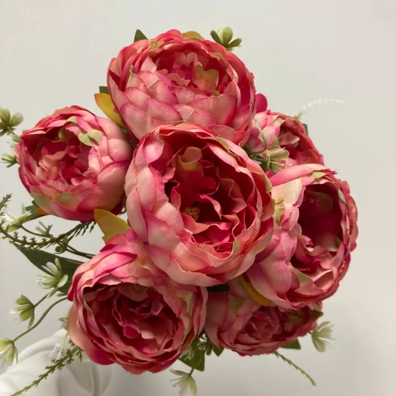 Selyem 7 fej bazsarózsa mesterséges virágok csokor