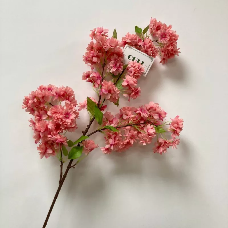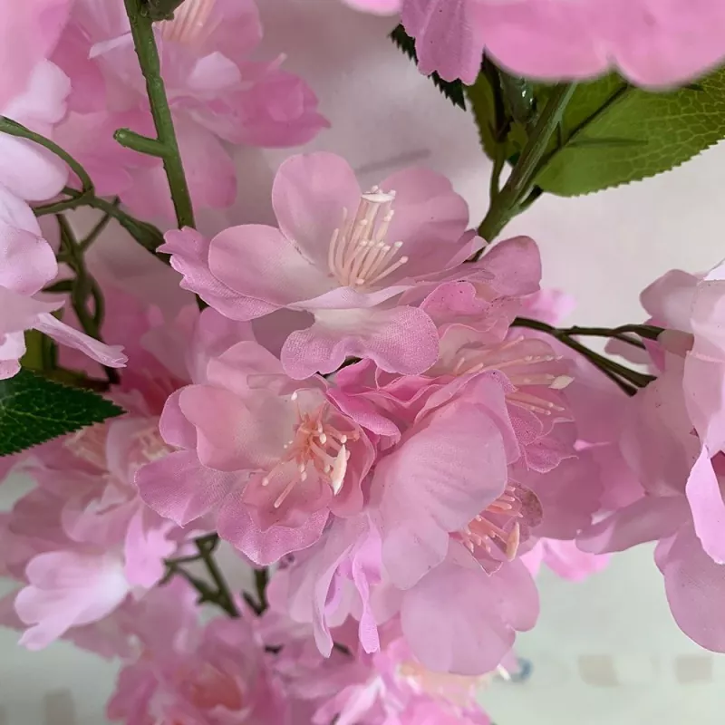 A mesterséges cseresznyevirág ágak három rétegben selyemszirmokat, rózsaszín porszállókat, öt elágazó ágakat és négy zöld levélkészletet tartalmaznak. Körülbelül 63 cm (kb. 2 hüvelyk) magasan állva, különféle beállításokhoz, beleértve az otthoni dekorációt és az esküvői rendezvényeket.